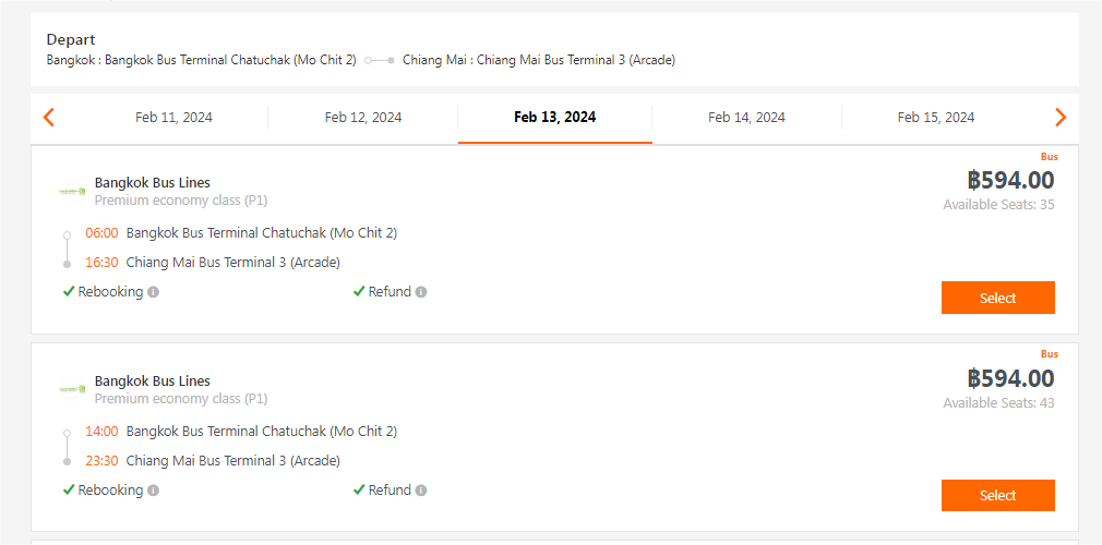2. Select you Bus Operator for booking and Click “ Select ” Button