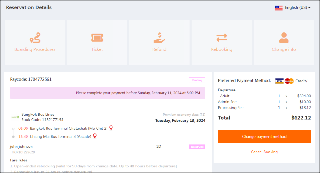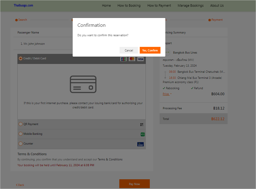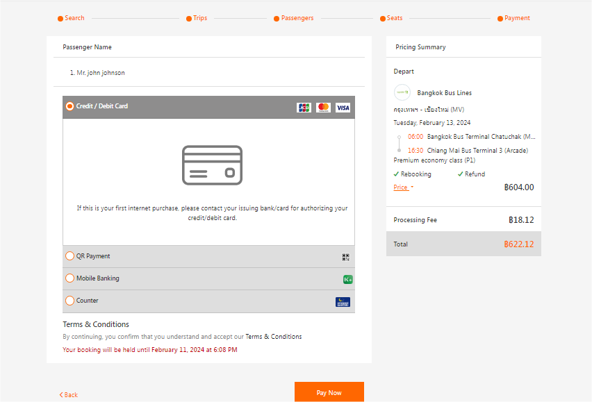 8.When payment is completed The system will automatically confirm your seat. You can check the ticket status here ” Check My Booking “ or E-mail